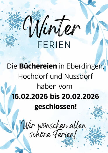 Vom 16.02.2026 - 20.02.2026 hat die Bücherei Eberdingen geschlossen!