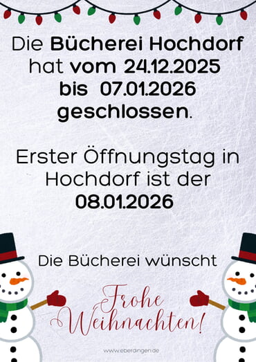 Die Bücherei Hochdorf hat vom 24.12.2025 bis 07.01.2026 geschlossen!