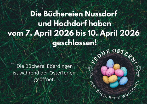 Am Donnerstag, den 26.03.2026 ist die Bücherei ausnahmsweise